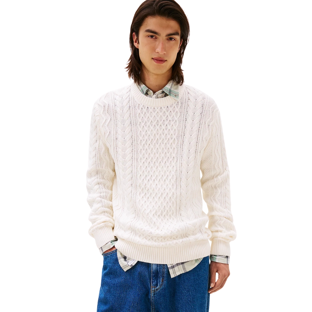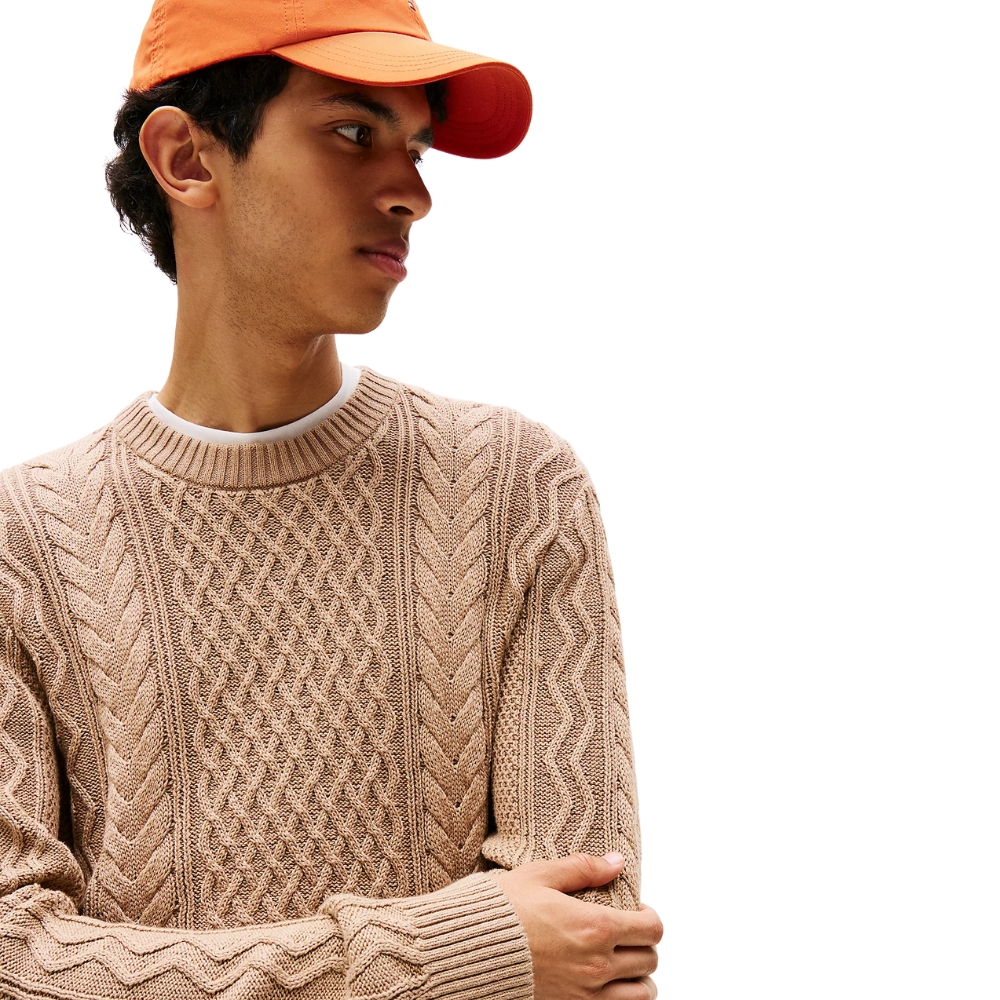 Il pullover, con la classica lavorazione a maglia intrecciata e il taglio slim, è un capo intramontabile e di grande impatto.