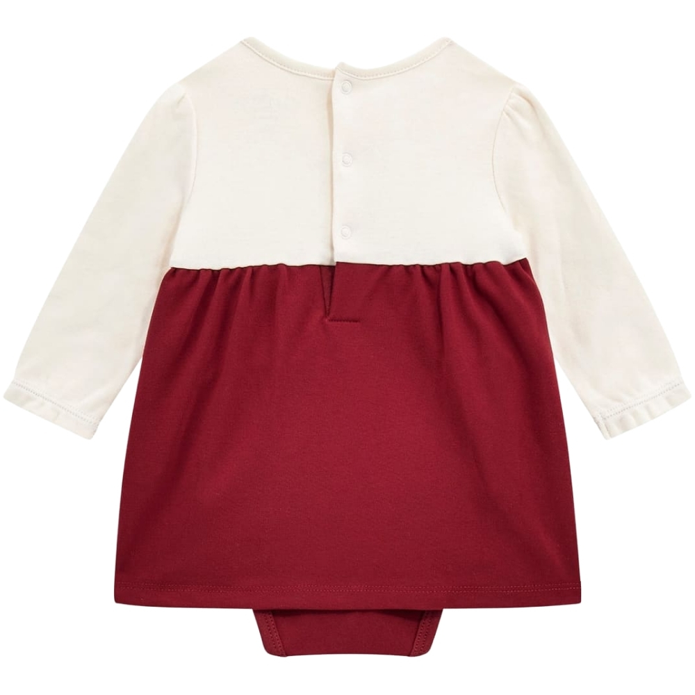 Design: girocollo classico + body incorporato sotto la gonna per maggiore praticità.