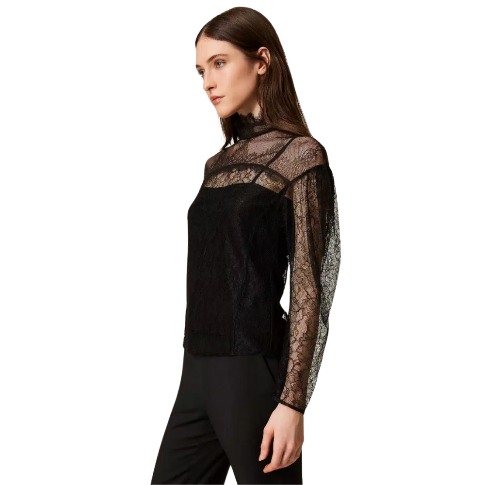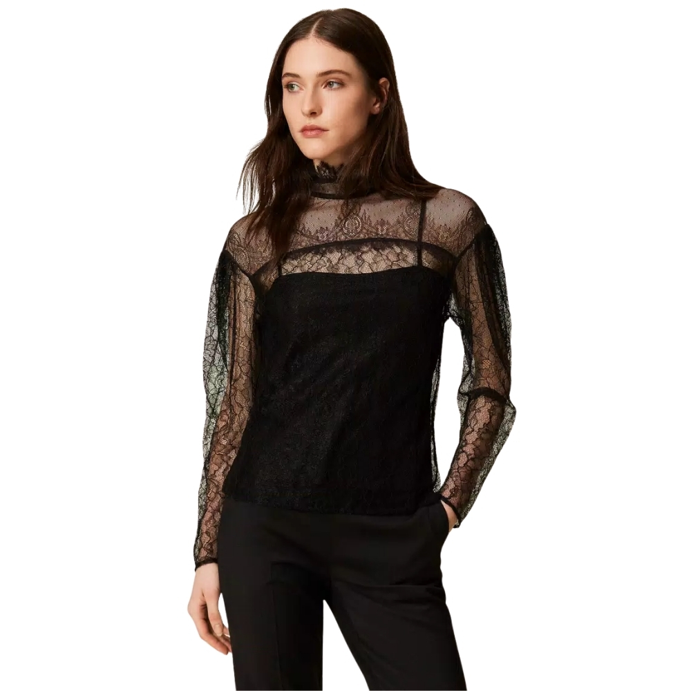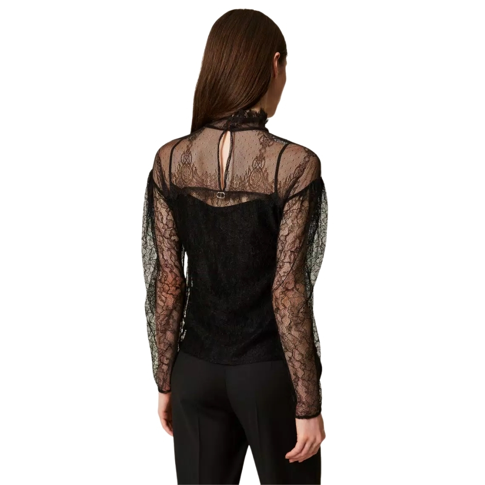 Blusa Twinset in pizzo con volant