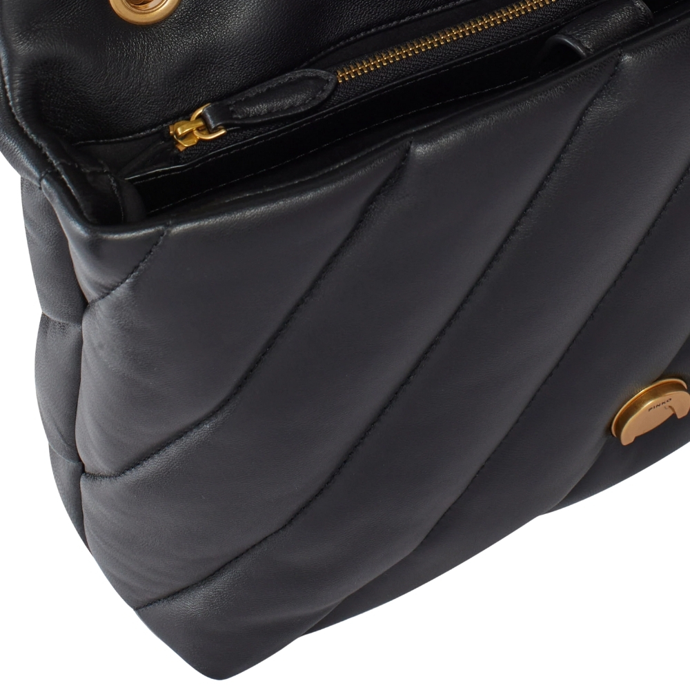 In morbida nappa con maxi trapuntatura obliqua.