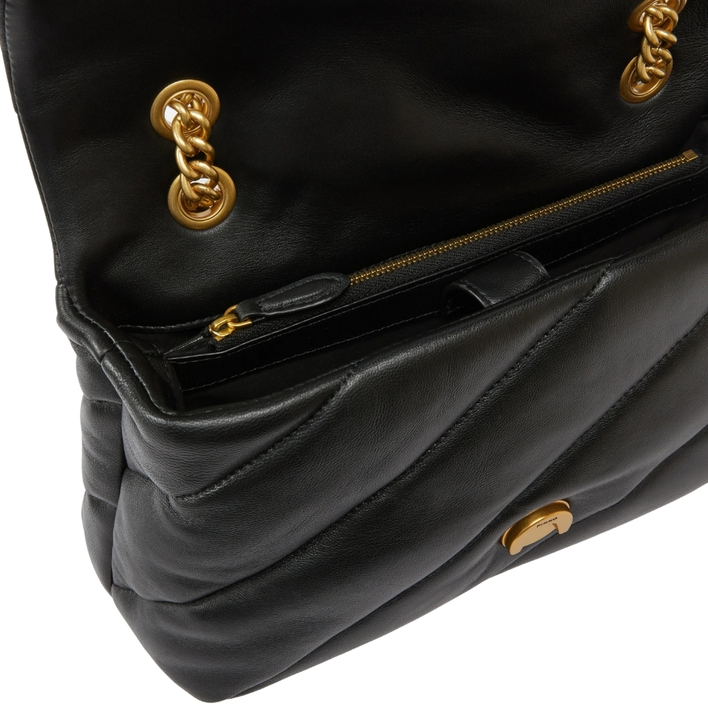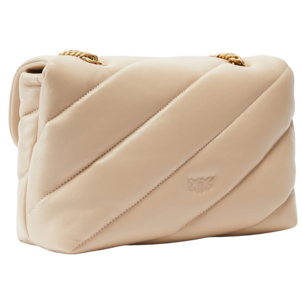In morbida nappa con maxi trapuntatura obliqua.