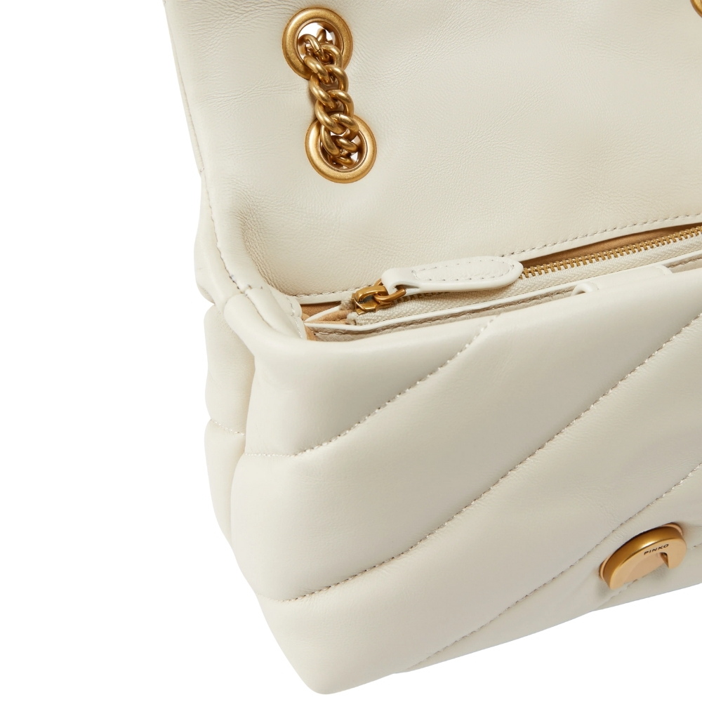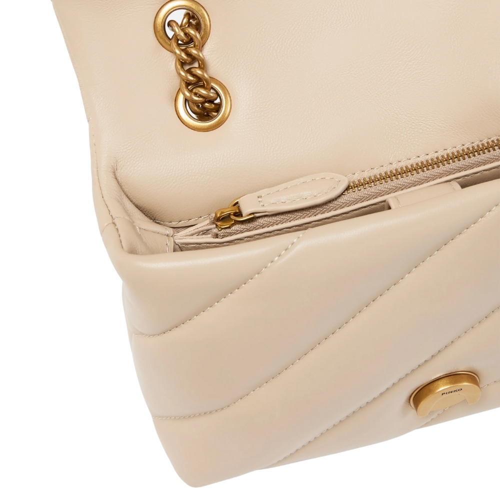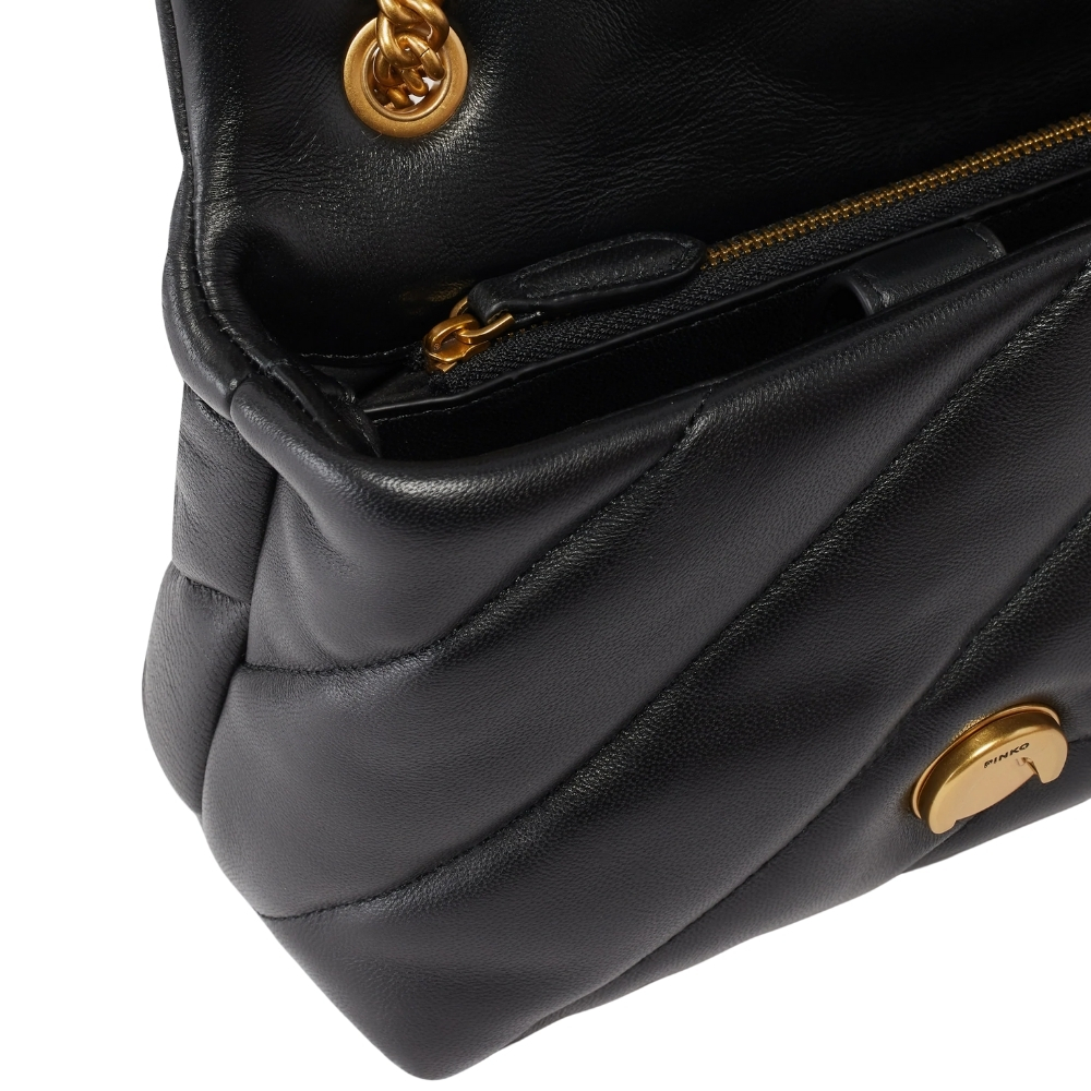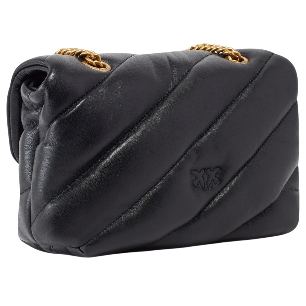 La tracolla combina la classica catena metallica rotonda al pratico spallaccio in nappa.