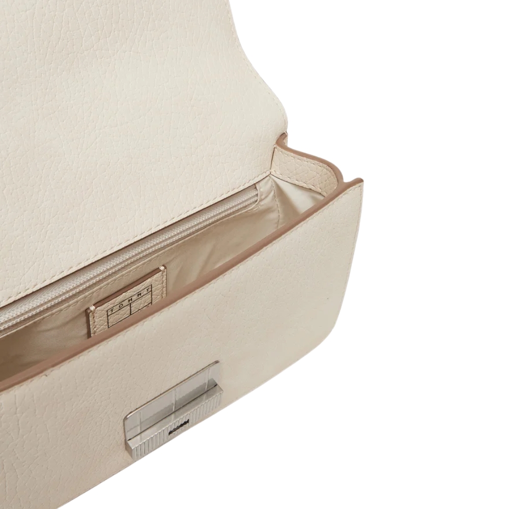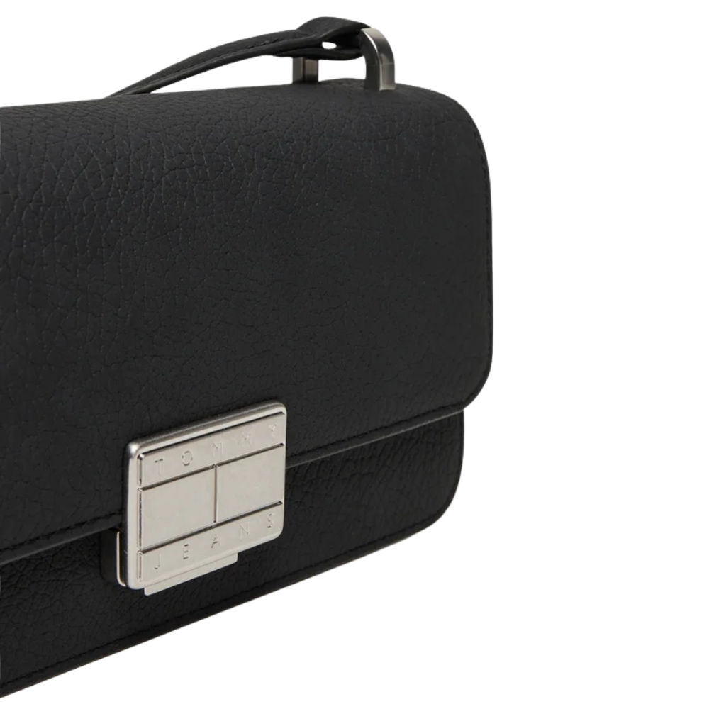 La borsa compatta a tracolla è perfetta per uscire la sera, grazie al design essenziale e alla finitura zigrinata piatta.