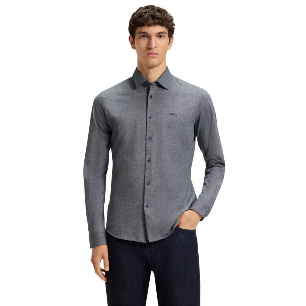 Camicia Hugo Boss slim fit in piquè di cotone mèlanage