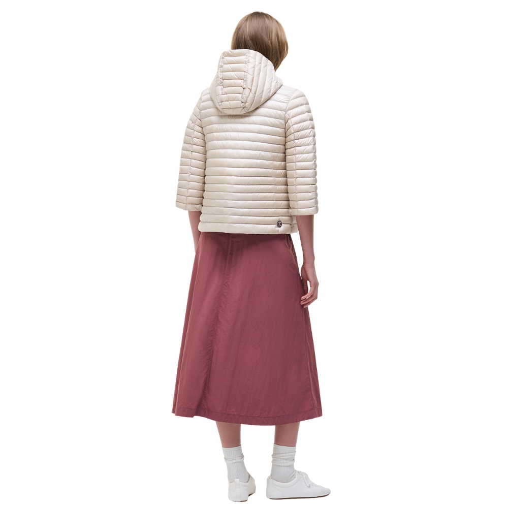 Caratterizzata dalla silhouette a trapezio e maniche a 3/4, questa cappa da donna 100 grammi unisce leggerezza e femminilità. Il cappuccio e le tasche laterali aggiungono praticità, mentre l’iconico logo sulla manica sinistra completa il design con un tocco distintivo e versatile.
