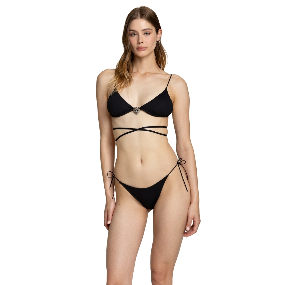 Bikini triangolo slip con laccetti regolabili per una vestibilità personalizzata e confortevole elegante con inserto centrale a forma di giaguaro