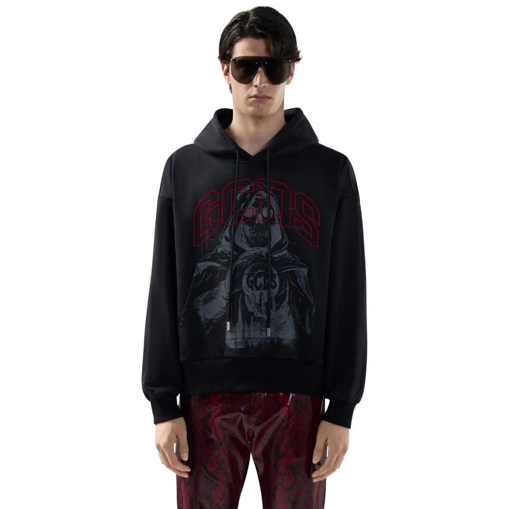 Felpa con cappuccio in cotone, caratterizzata da una stampa gotica sul fronte con lettering GCDS a contrasto. Modello con coulisse al cappuccio, tasca a marsupio e fondo a costine.