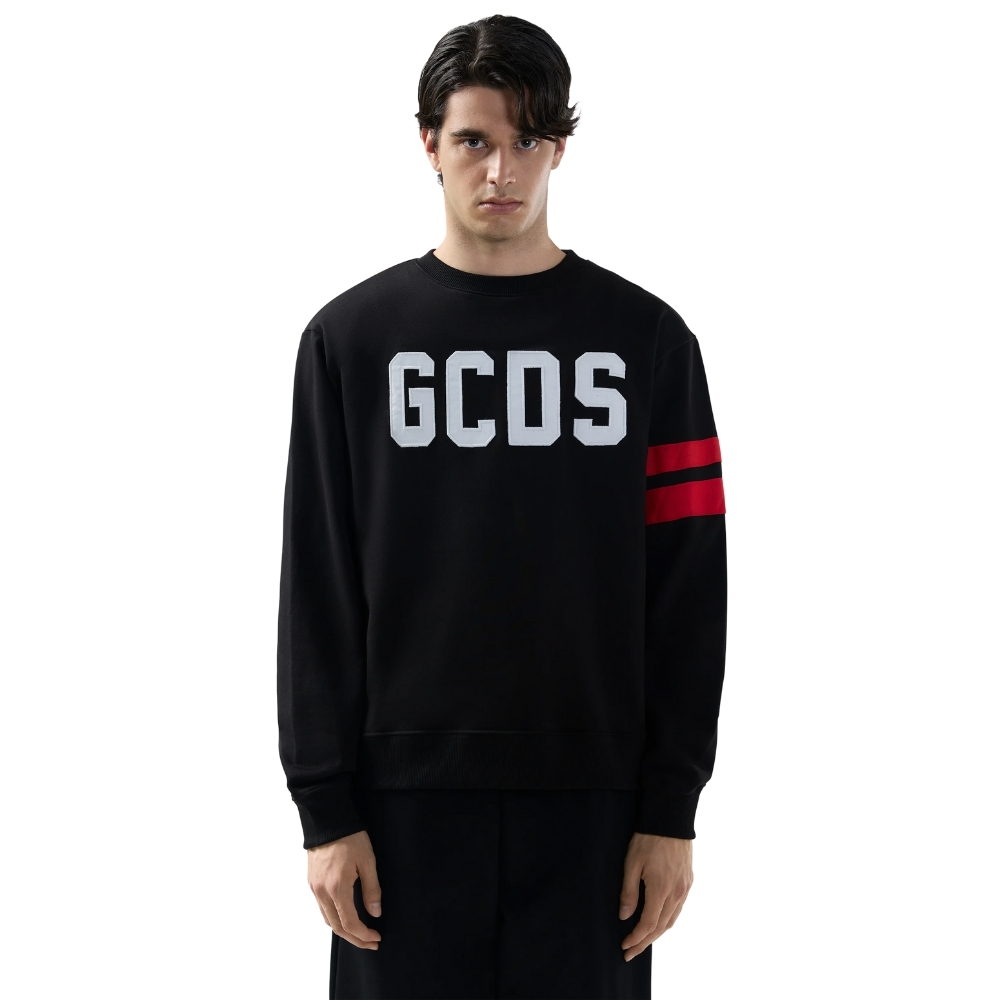 Felpa girocollo in jersey di cotone. Logo GCDS ricamato in raso applicato sul davanti. Doppia banda in gros-grain sulla manica sinistra e ricamo al centro della schiena. Vestibilità regular.