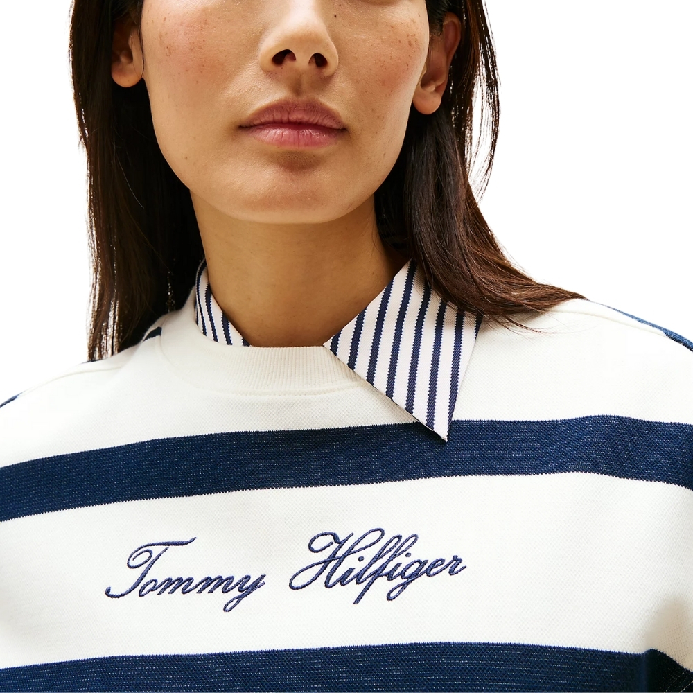 • Logo Tommy Hilfiger in corsivo ricamato sul petto