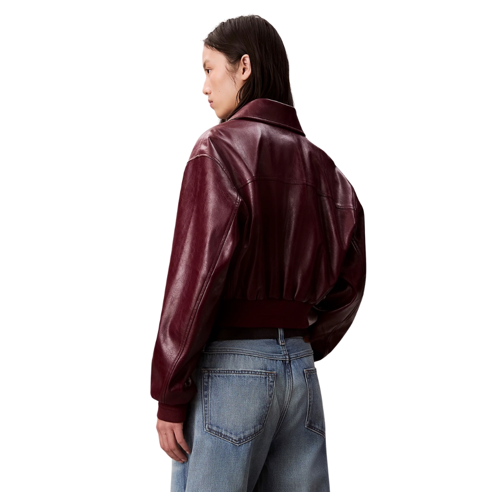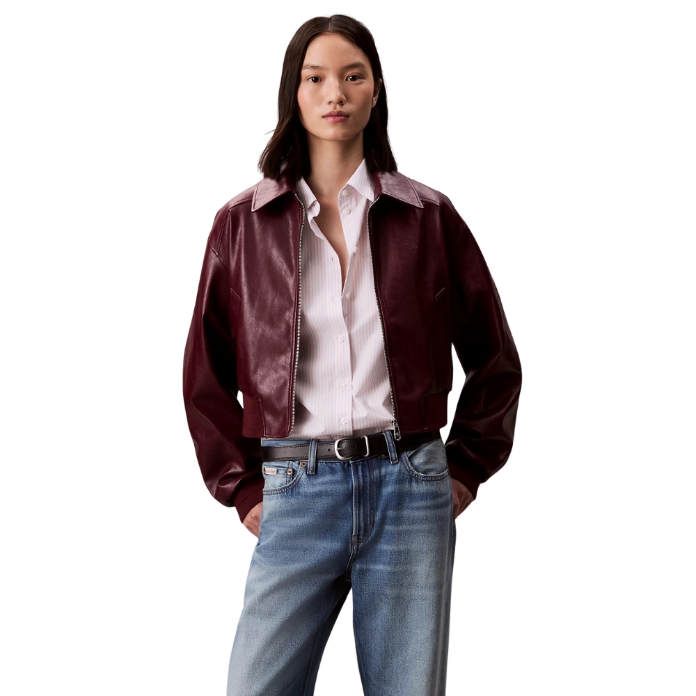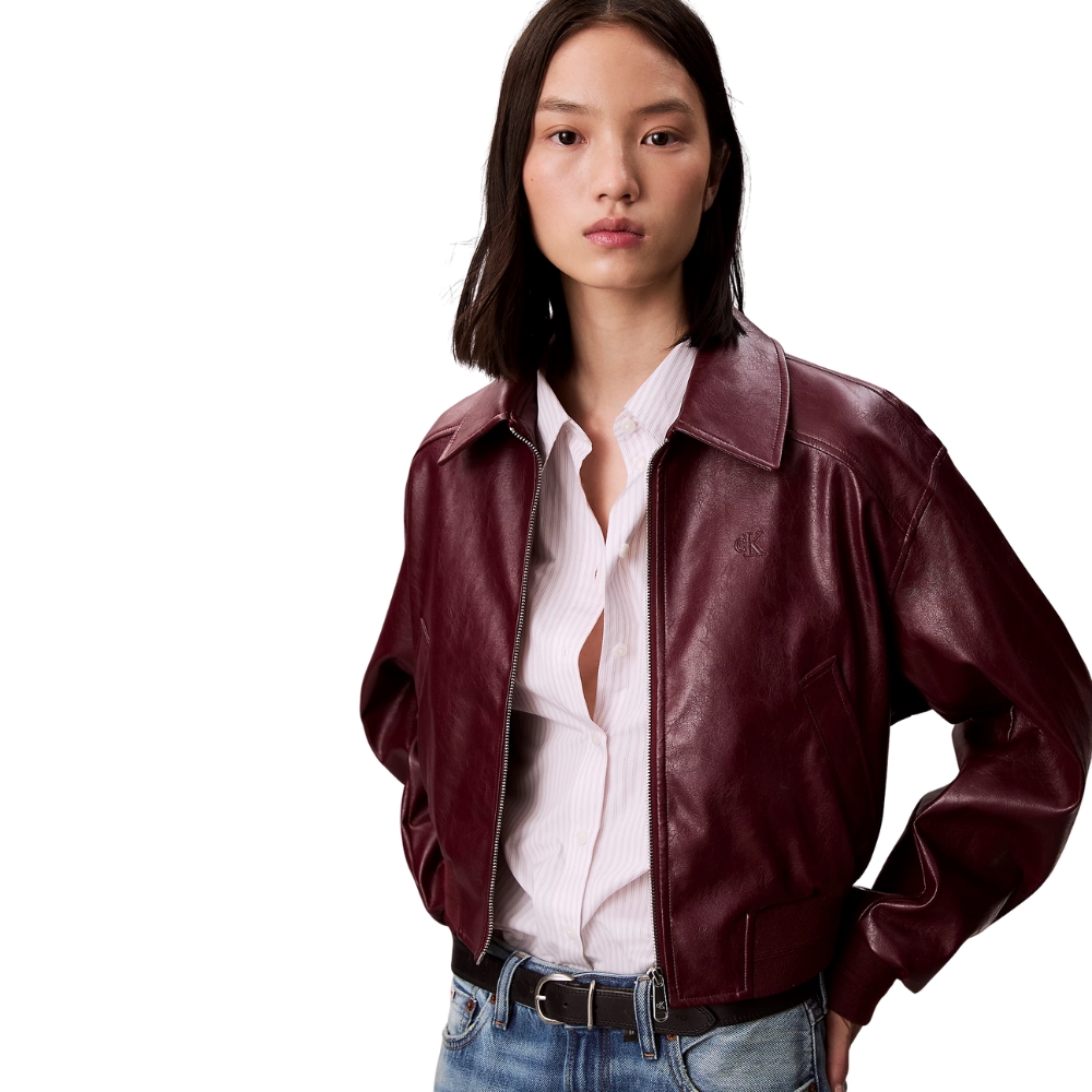 Una rivisitazione del classico bomber, con una vestibilità aggiornata in elegante ecopelle.