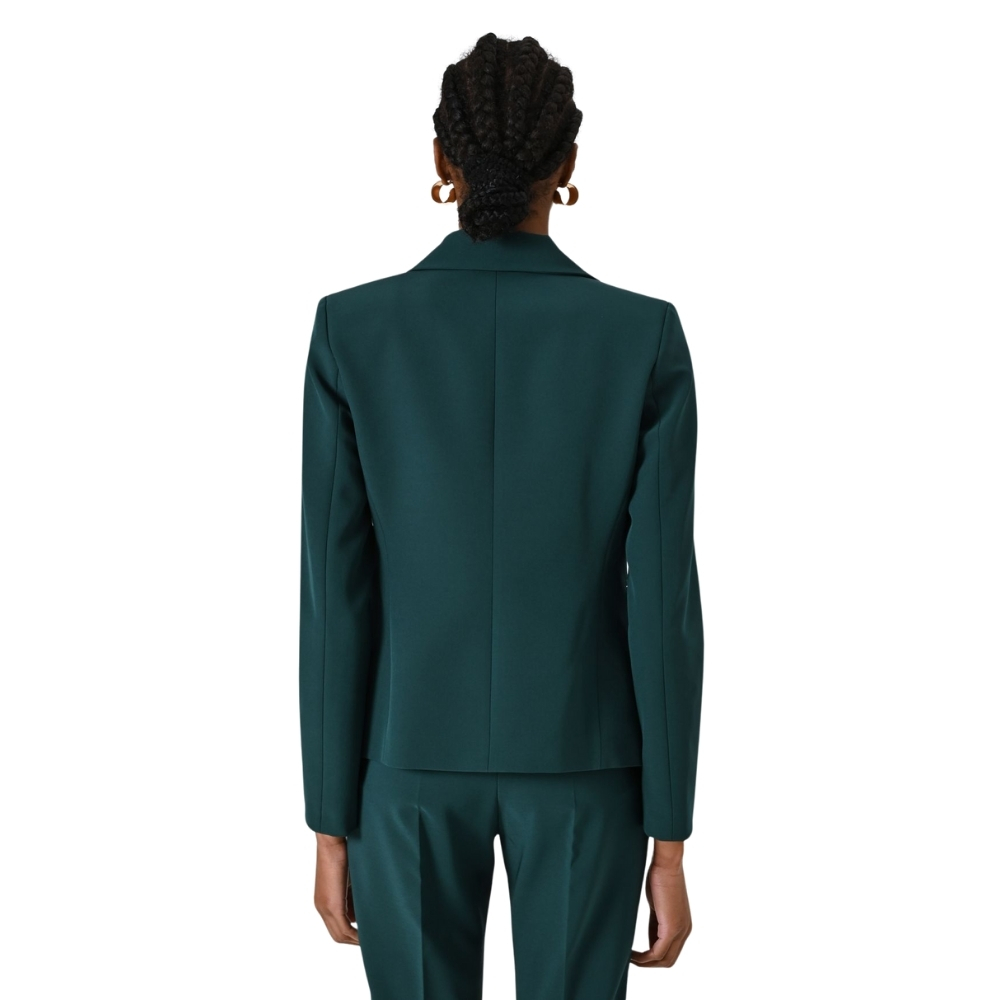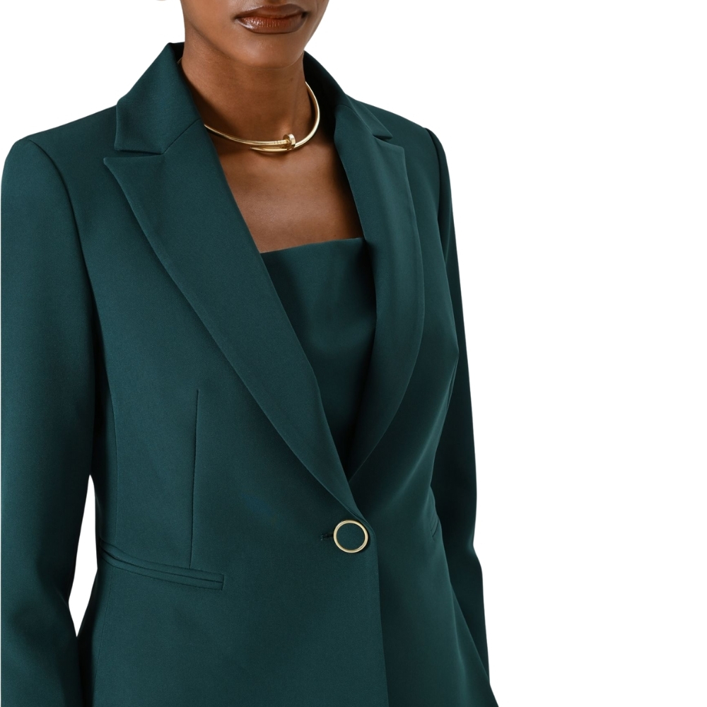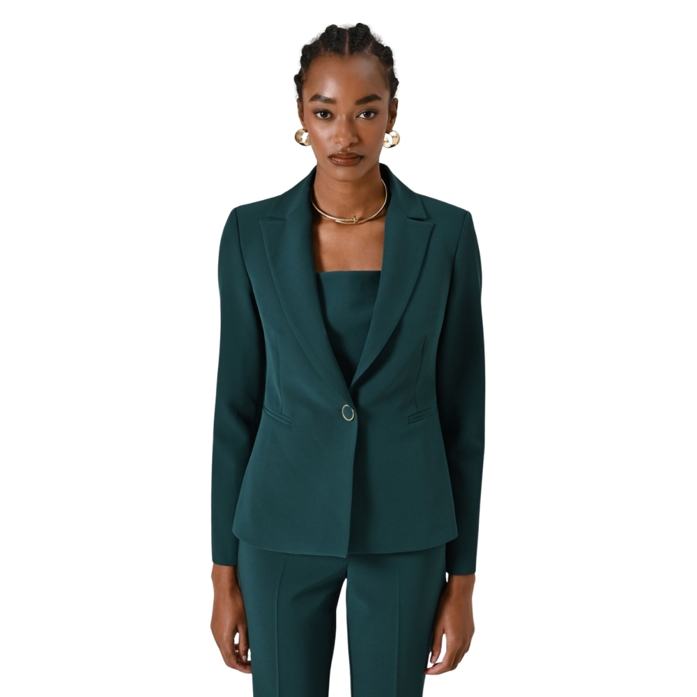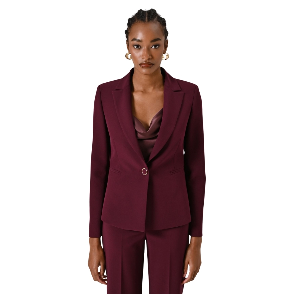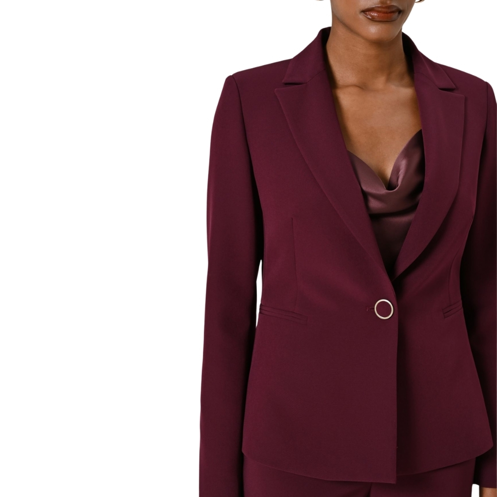 La Giacca Monobottone in Tessuto Tecnico è un capo iconico per definire il guardaroba formale con una nota di femminilità contemporanea.