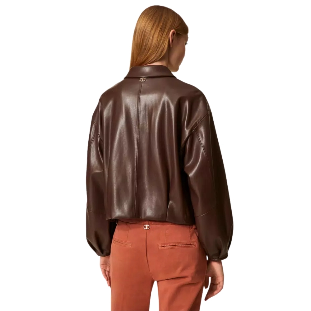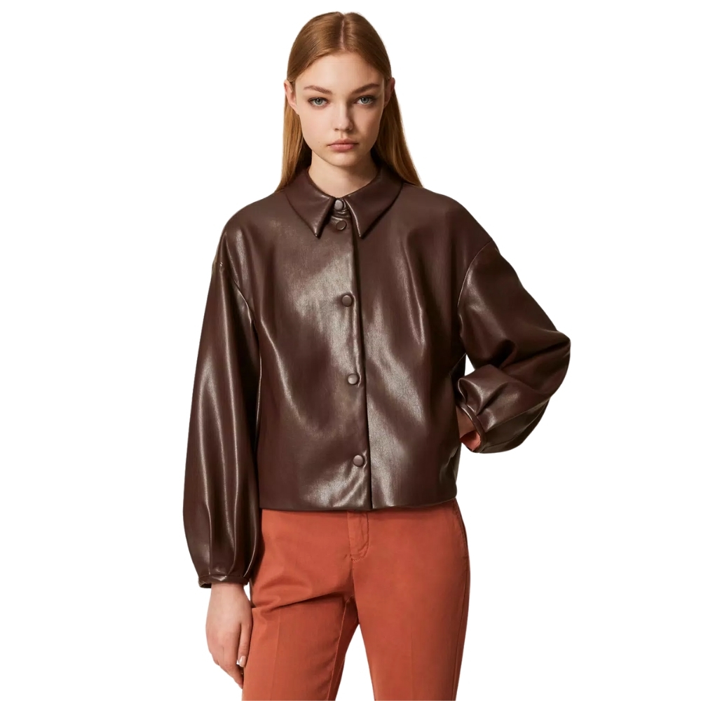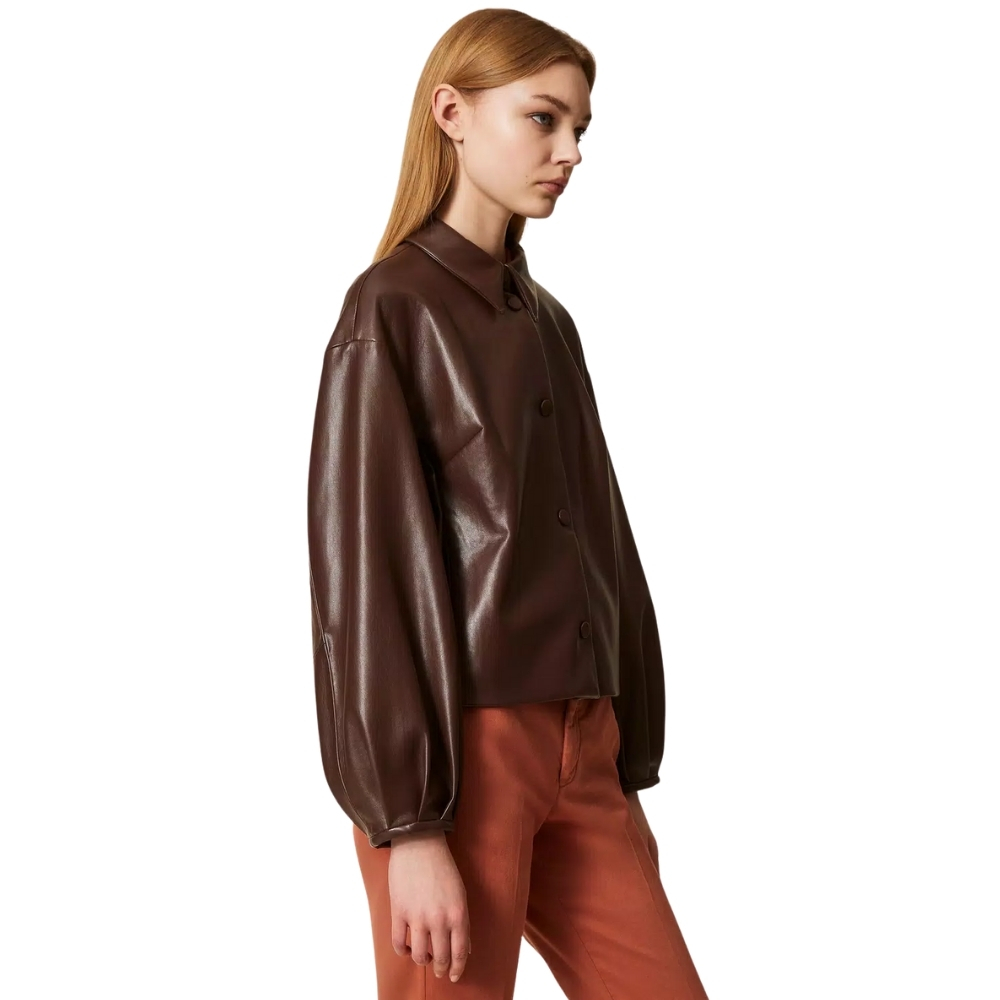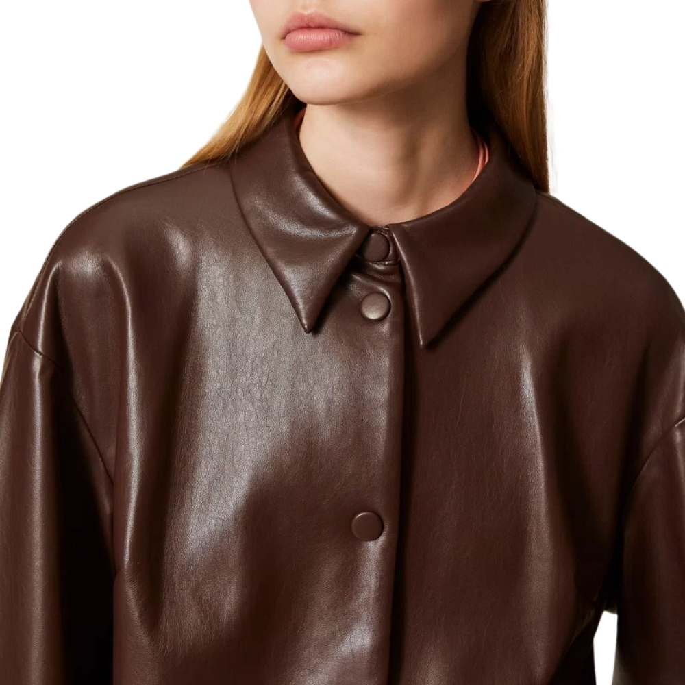 Giacca Twinset effetto pelle con colletto a camicia