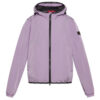Giacca a vento corta in tela leggera di nylon dall’aspetto stropicciato, ottenuto grazie alla tintura in corda ed il finissaggio finale. Water repellent. Cappuccio fisso con fodera in rete e polsini elasticati. Chiusura con zip centrale a vista, doppio cursore. Tasca a filetto con automatico. Un modello sportivo, leggero e pratico, ma pur sempre femminile, per proteggerti nelle giornate di vento e pioggerelline primaverili.