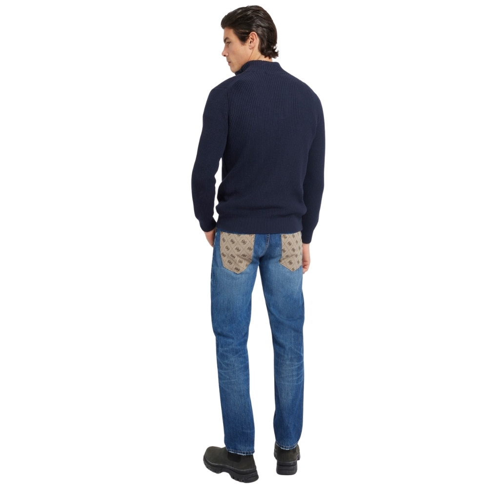 Colore: Indigo wash (blu) con effetti di scoloritura e whiskering.