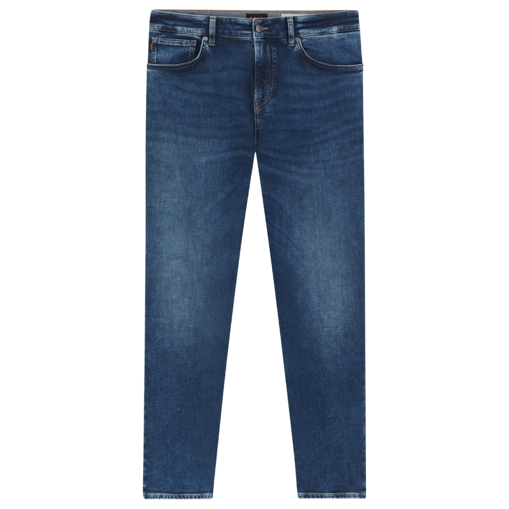 Jeans regular fit BOSS Uomo con gamba affusolata. Realizzati in denim blu super elasticizzato con morbidi filati slub-yarn per un comfort imbattibile.