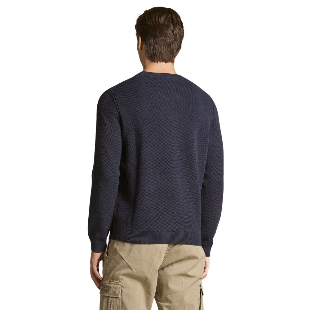 La riconoscibile texture in maglia punto riso di questo maglione crea un particolare effetto che lo rende sofisticato e moderno. Dotato di un pratico girocollo, è realizzato in misto lana e cotone per fornire il giusto apporto di calore. Impreziosito unicamente da un ricamo dell’emblematica aquila turrita in tono, questo modello si firma per la sua curata essenzialità.