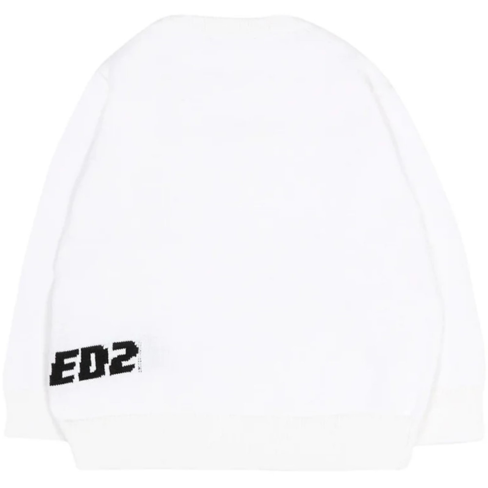 Maglia realizzata in filato di cotone, caratterizzata da colletto rotondo, chiusura con bottoncini sulla spalla, maniche lunghe e finiture a costine. È decorata con logo ad intarsio sul davanti.