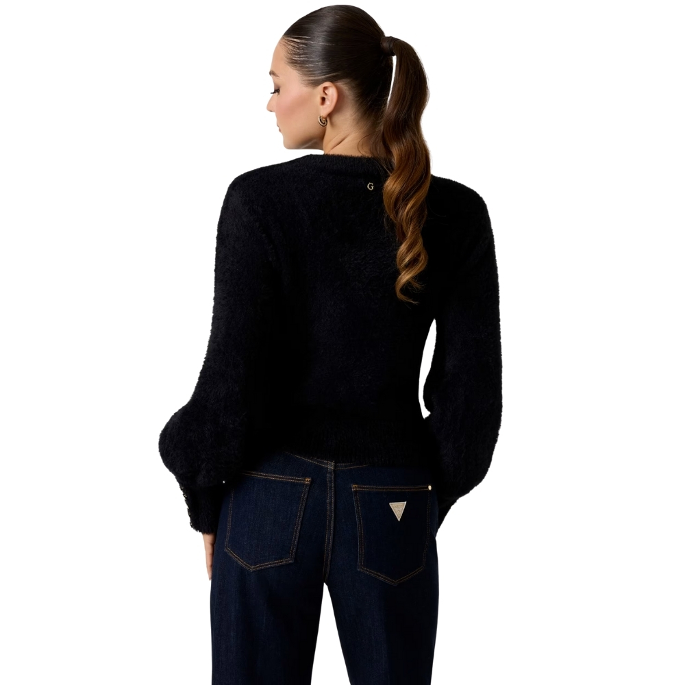 Maglia a costine sul collo, sui polsini e sull’orlo.