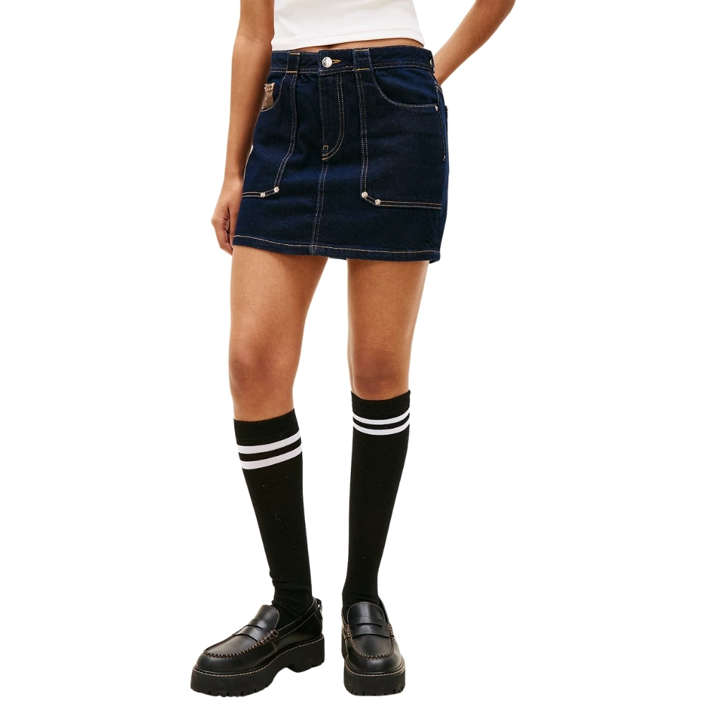 Minigonna Tommy Jeans straight fit in denim con bandierina