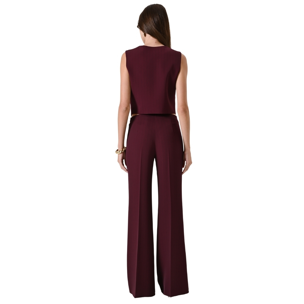 I Pantaloni Bordeaux con Riga Nera sono un capo essenziale per creare look eleganti e contemporanei, perfetti per distinguersi in ogni occasione.
