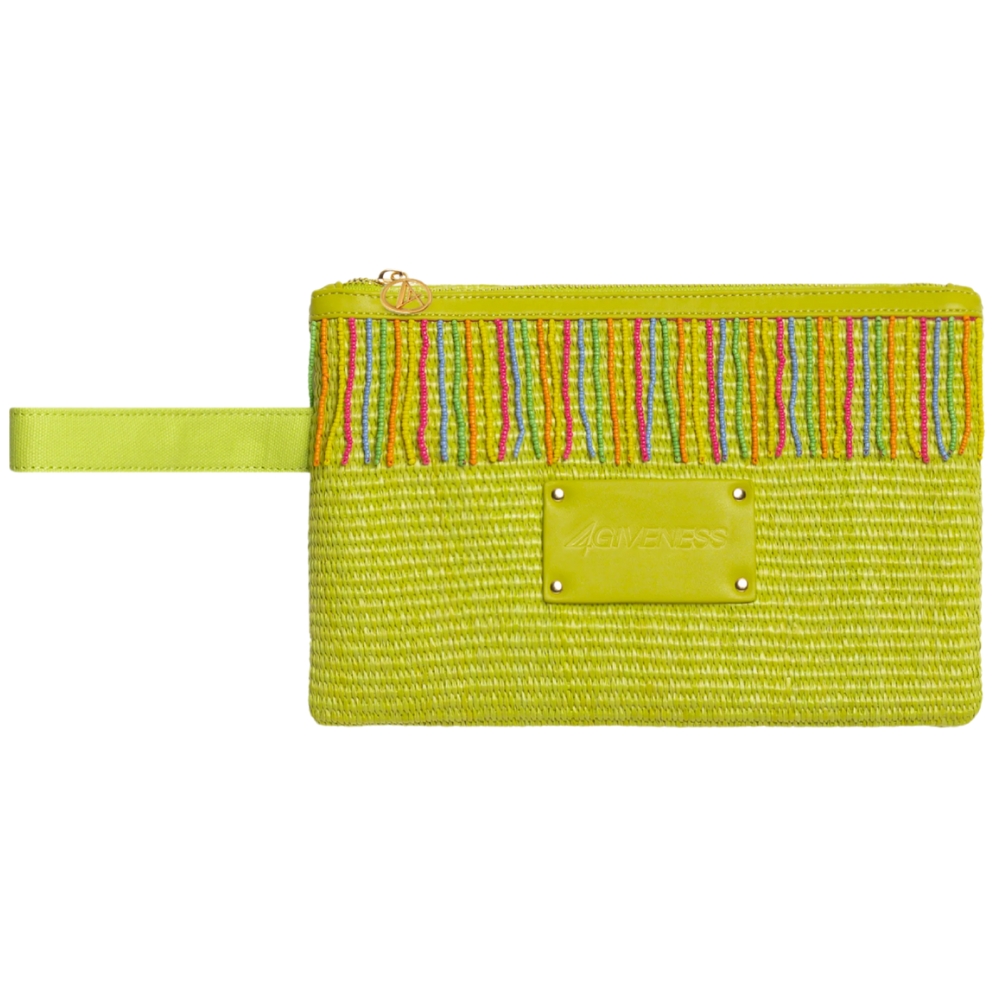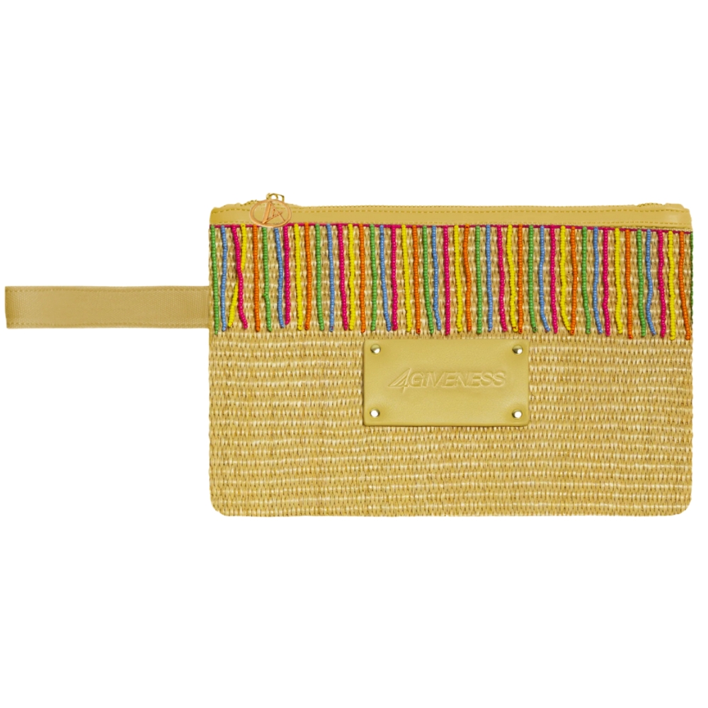 Descrizione: pochette mare in materiale intrecciato effetto paglia.