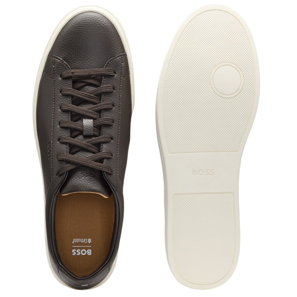 Completa i tuoi look con lo stile semplice di queste sneakers BOSS Uomo. Realizzate in pelle martellata con impunture che riproducono le righe tipiche del marchio e suola in gomma.