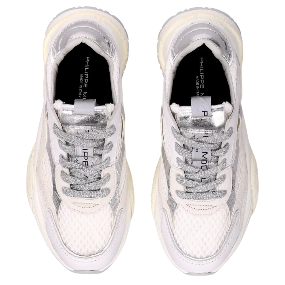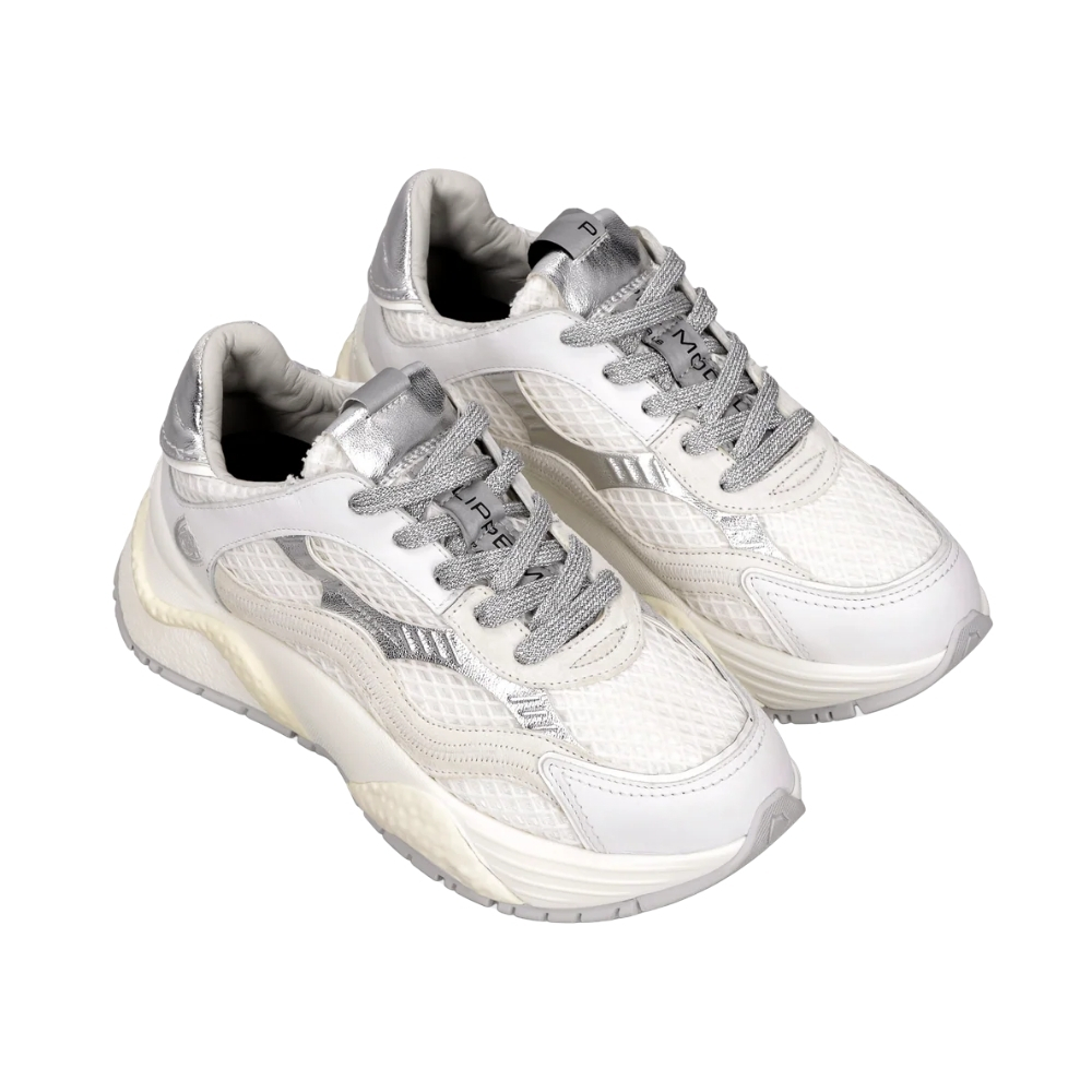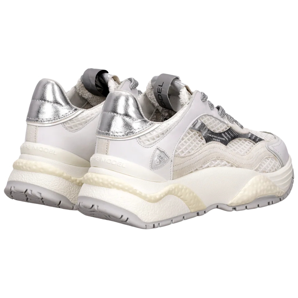 Nuova running dalle forme contemporanee e uno stile bold, una sneaker moderna contemporanea, che prende ispirazione dal mondo cittadino. La tomaia è in suede con ricamo zig zag in mesh metallizzato e con inserti silver come lo scudo lavorato ad alta frequenza sul tallone e lo spoiler. In versione bassa con una suola platform dinamica color bianco latte.