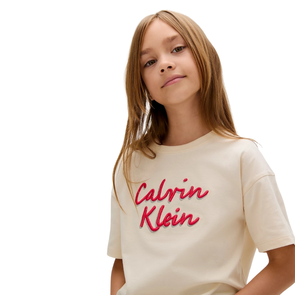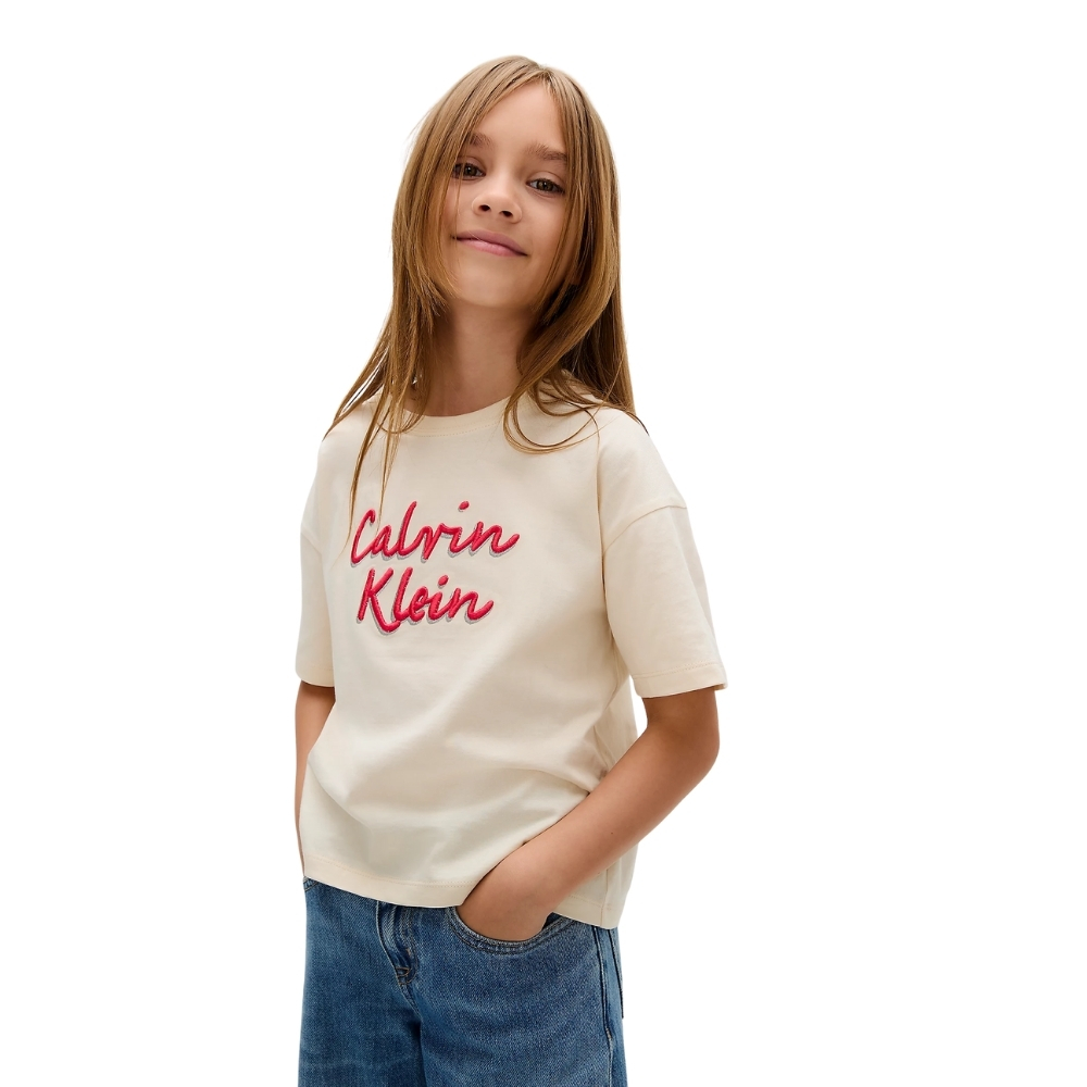 T-Shirt Calvin Klein junior con logo taglio squadrato