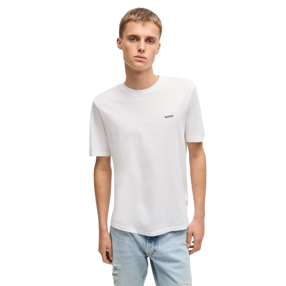 Una T-shirt a maniche corte straight fit HUGO Uomo realizzata in morbido jersey con logo a contrasto stampato sul petto.