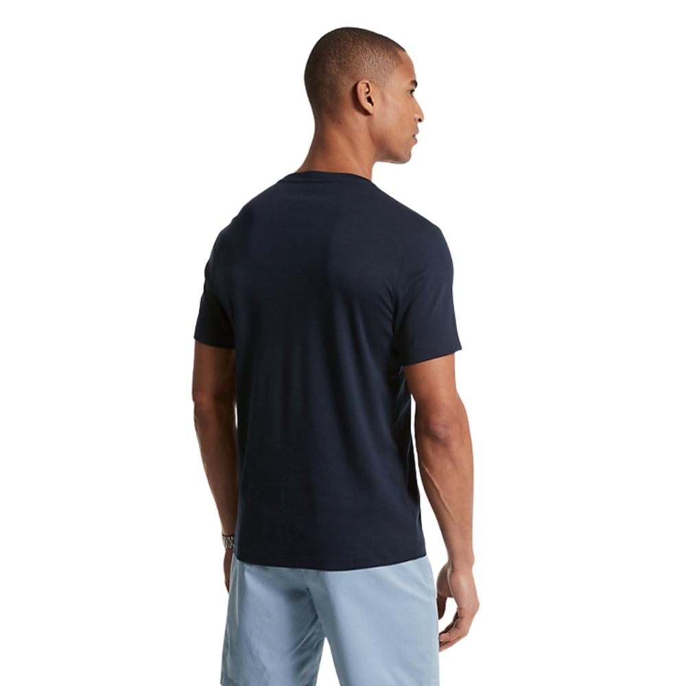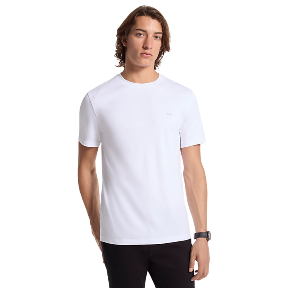 Questa t-shirt girocollo in cotone traspirante è sportiva, ma soprattutto raffinata. E si abbina a tutto, dai pantaloni sartoriali ai jeans aderenti.