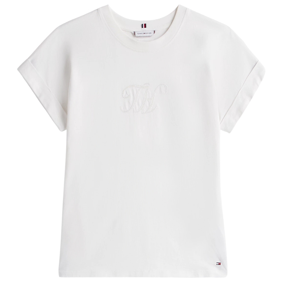 • Logo Tommy Hilfiger in corsivo ricamato sul petto
