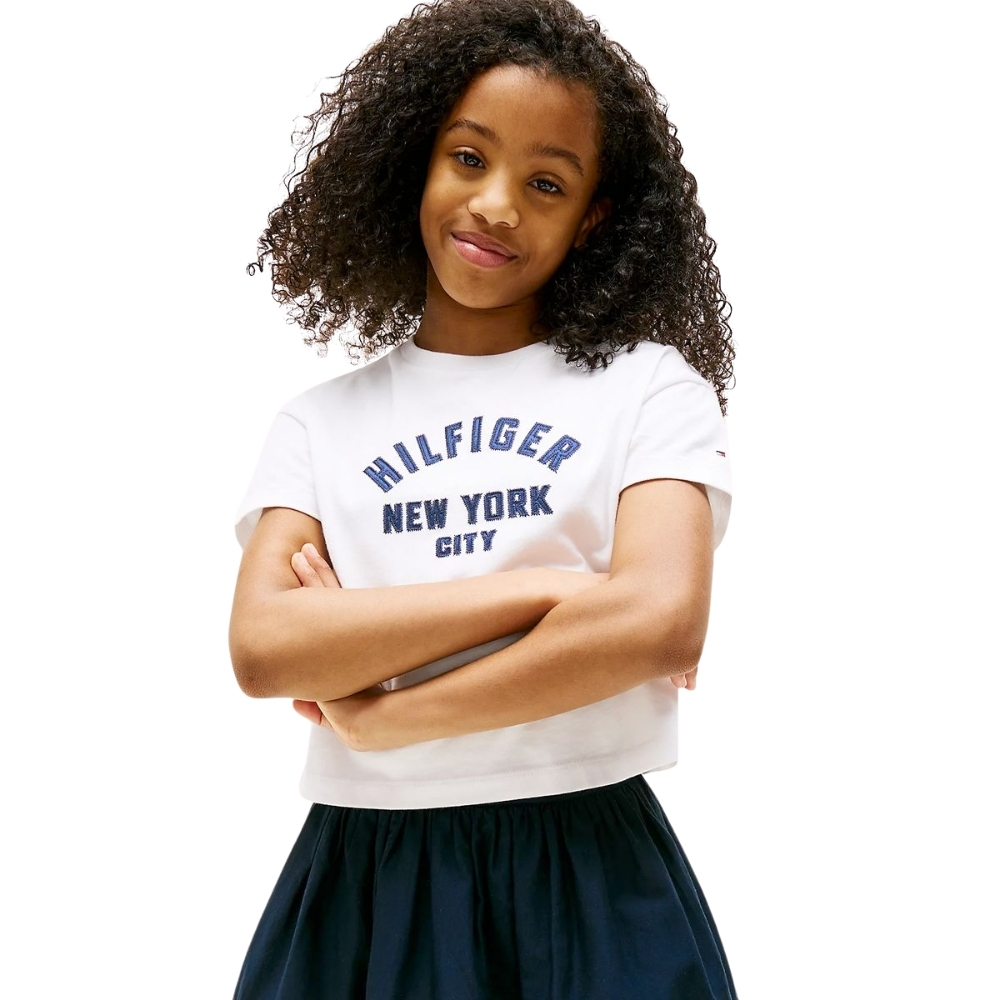T-shirt Tommy Hilfiger junior relaxed fit con logo in raso