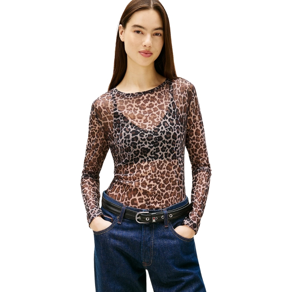 T-Shirt Tommy Jeans a rete con stampa leopardata
