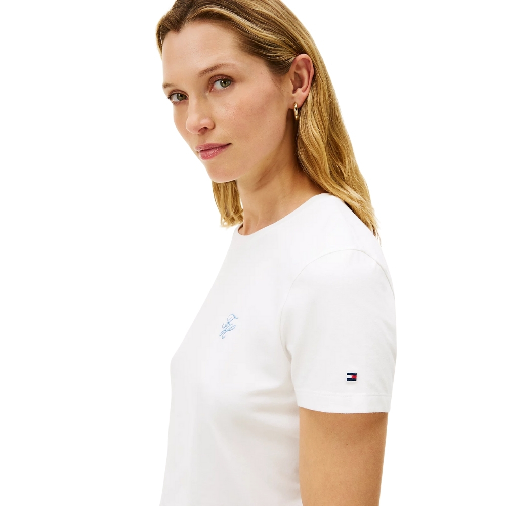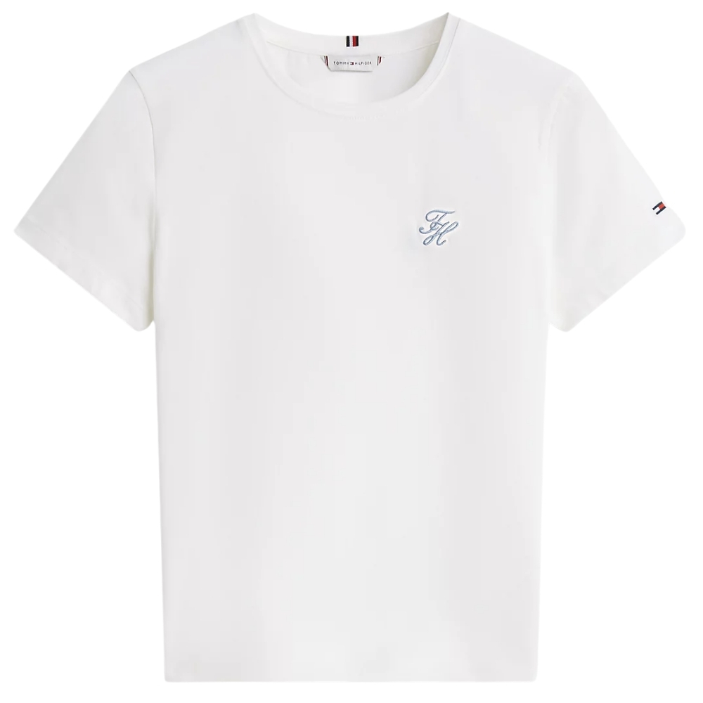 • Logo Tommy Hilfiger in corsivo ricamato sul petto