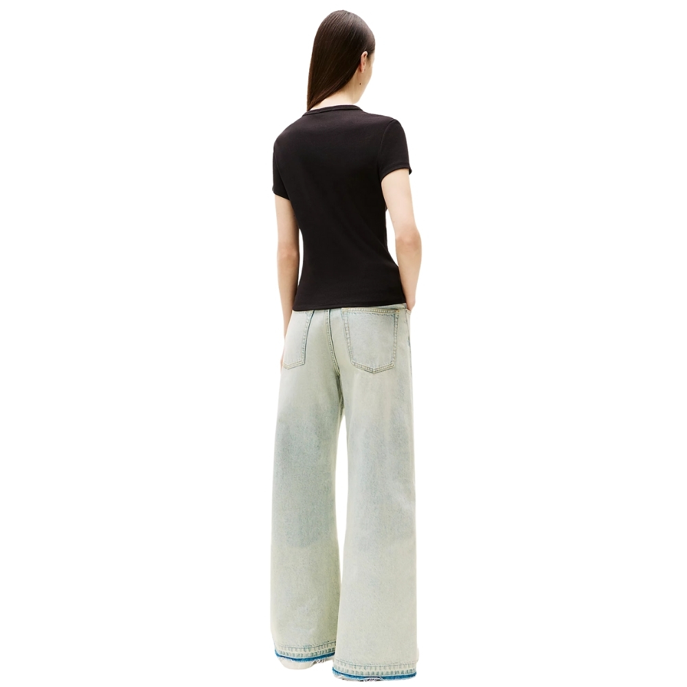 La T-shirt aderente in cotone stretch è pensata per esaltare la tua silhouette, mentre la bandierina ricamata al centro aggiunge l’inconfondibile tocco iconico.