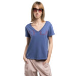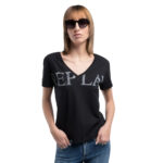 T-shirt in jersey di cotone con maniche corte ad aletta rifinite in pizzo macramè, collo tondo, placchetta logo Oval T in metallo, linea dritta.