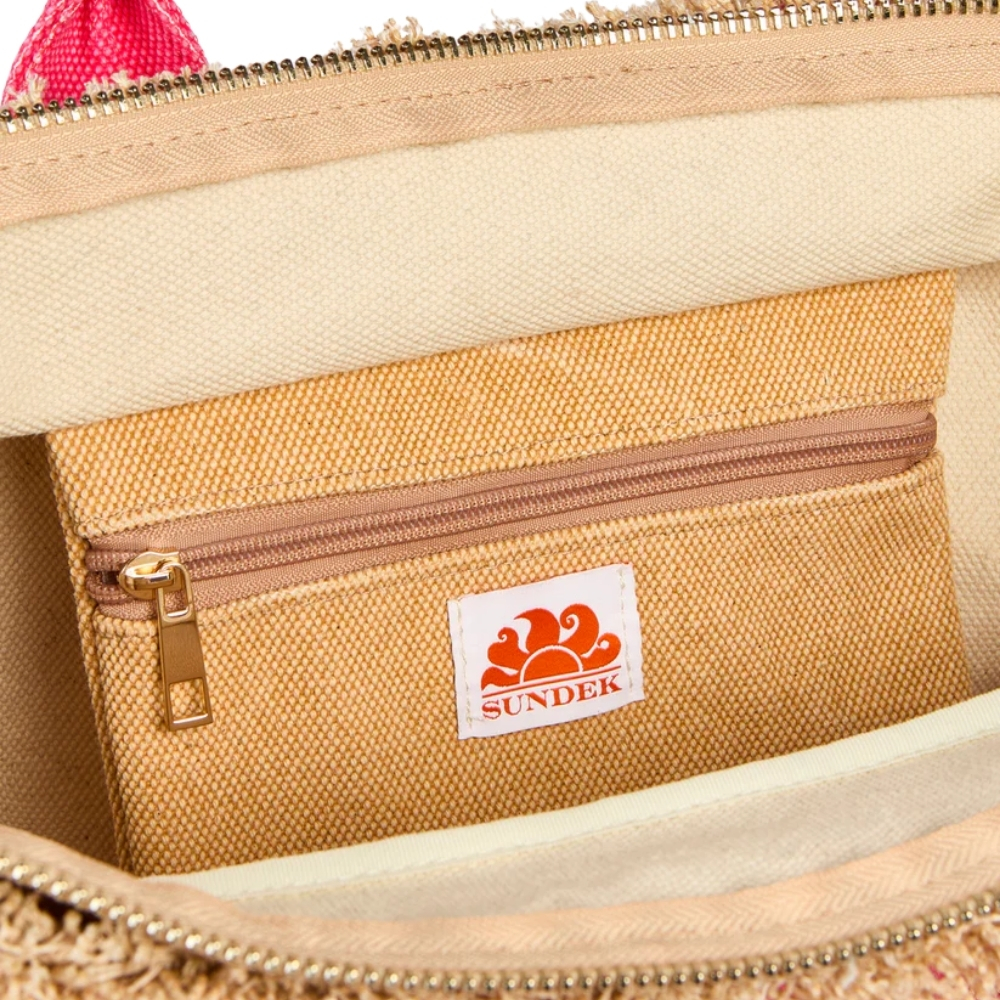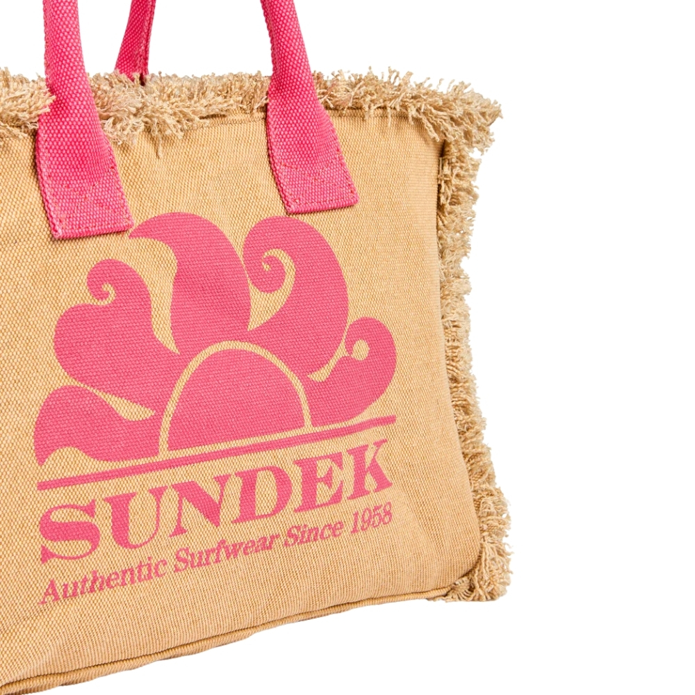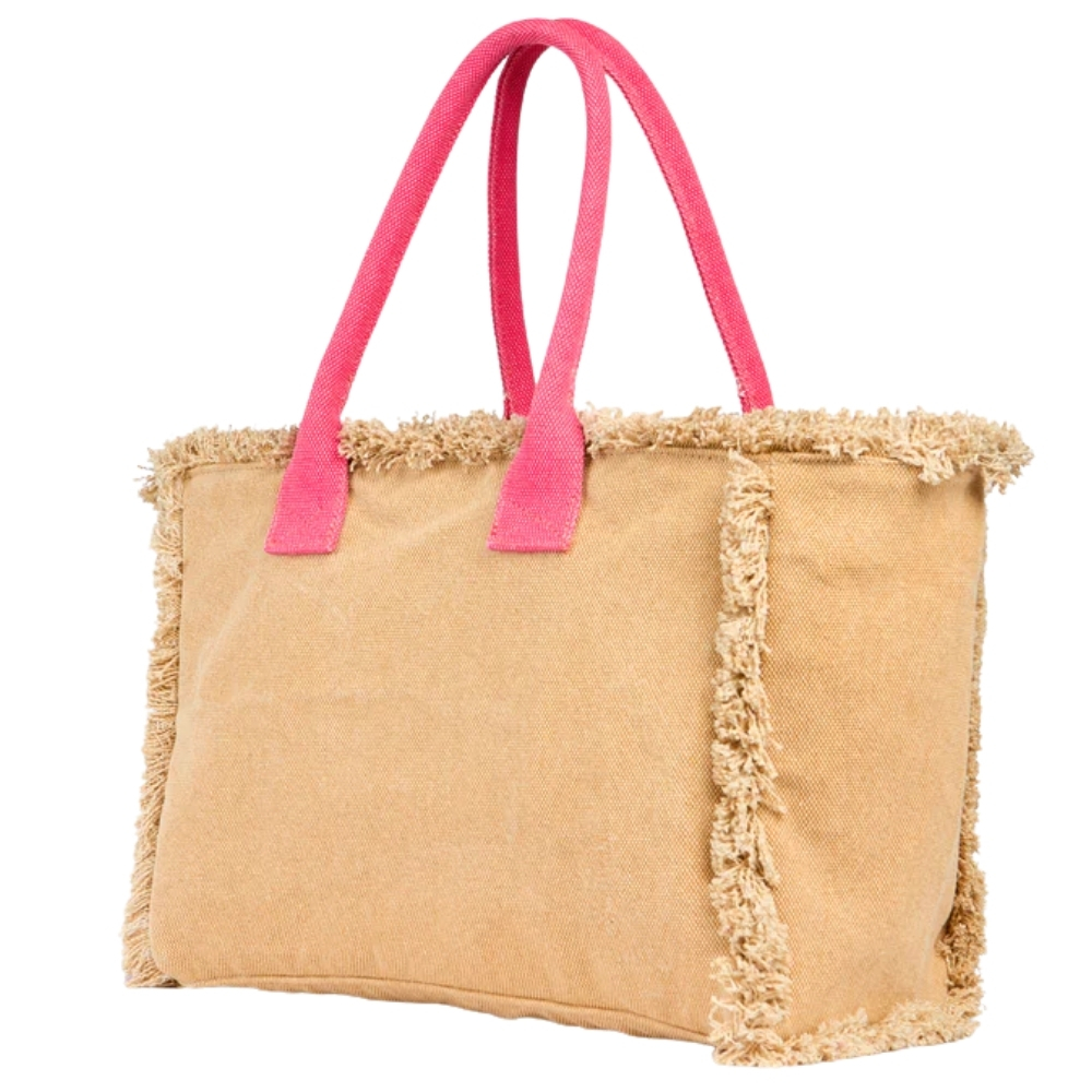 Tote bag formato regular con effetto stone washed, zip centrale, logo grande stampato e rifiniture in oro. Il dettaglio delle frange rende questo modello adatto a look decisi.