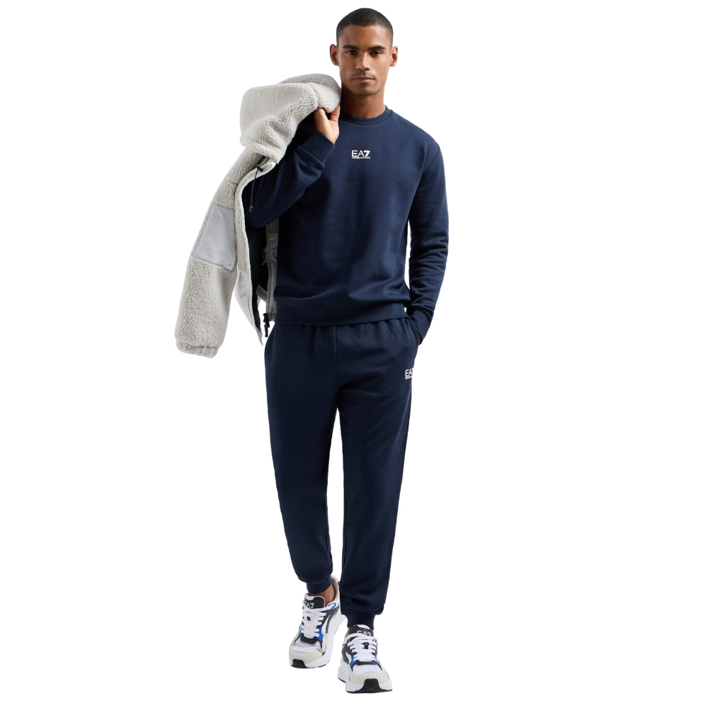 La tuta EA7 combina comodità e stile dinamico per assicurarti comfort durante lo sport e i momenti di relax. Il modello è realizzato in misto cotone ed è composto da felpa girocollo e pantaloni jogger con coulisse in vita, tasche e fondo caviglia elasticizzato.