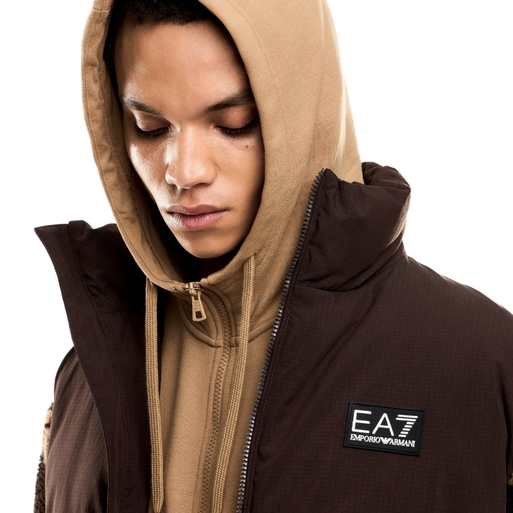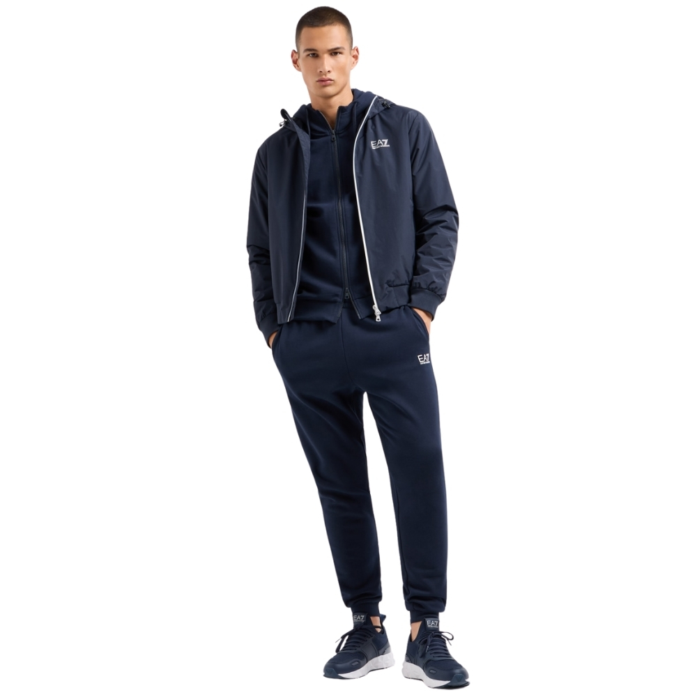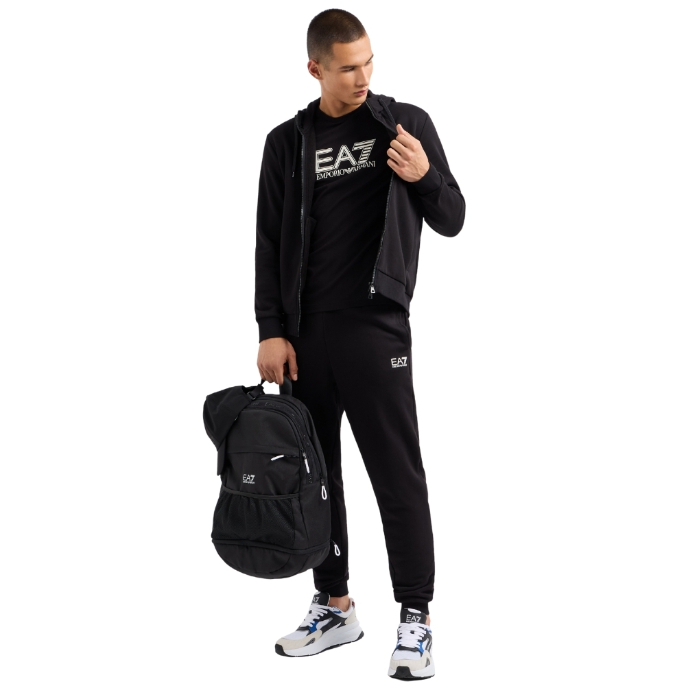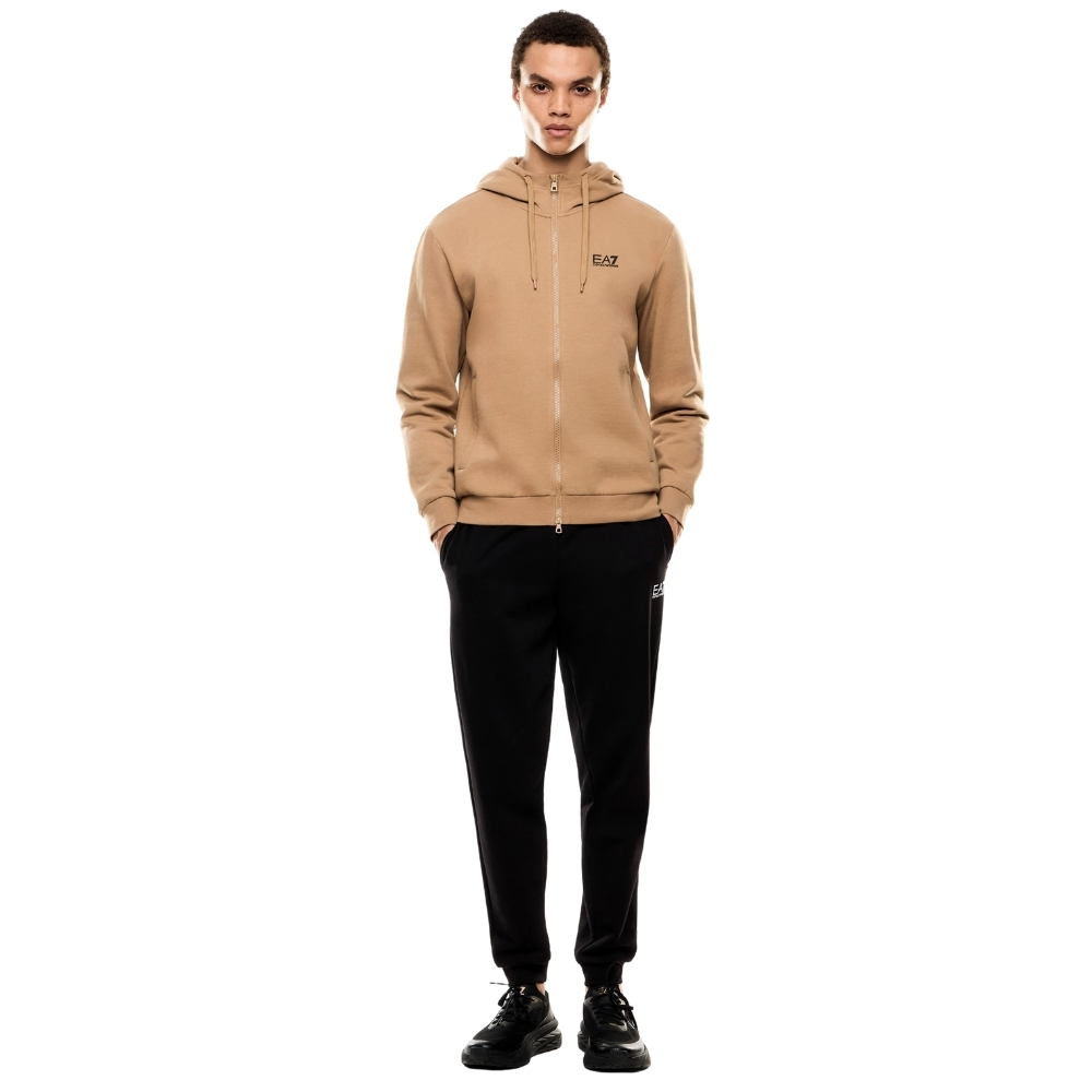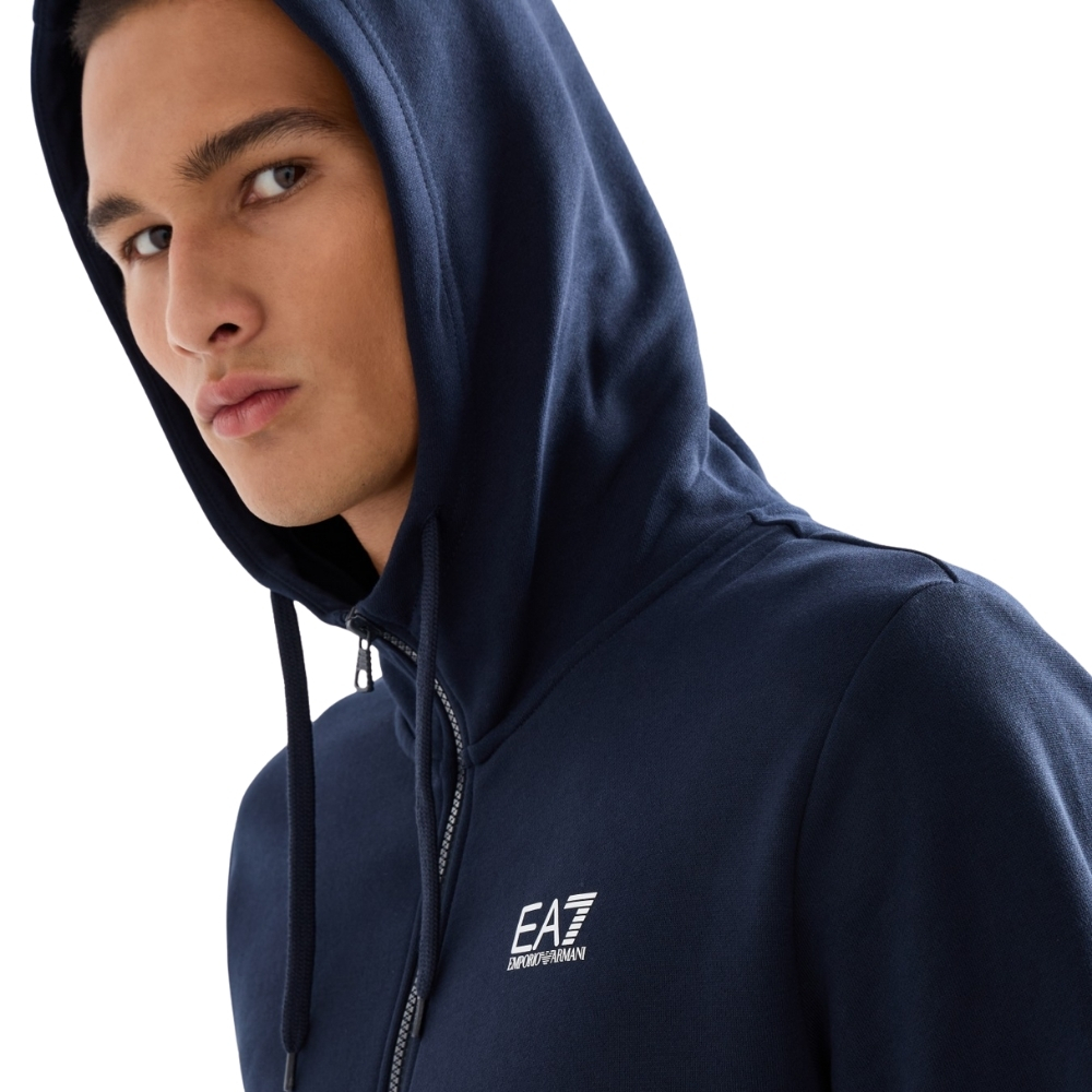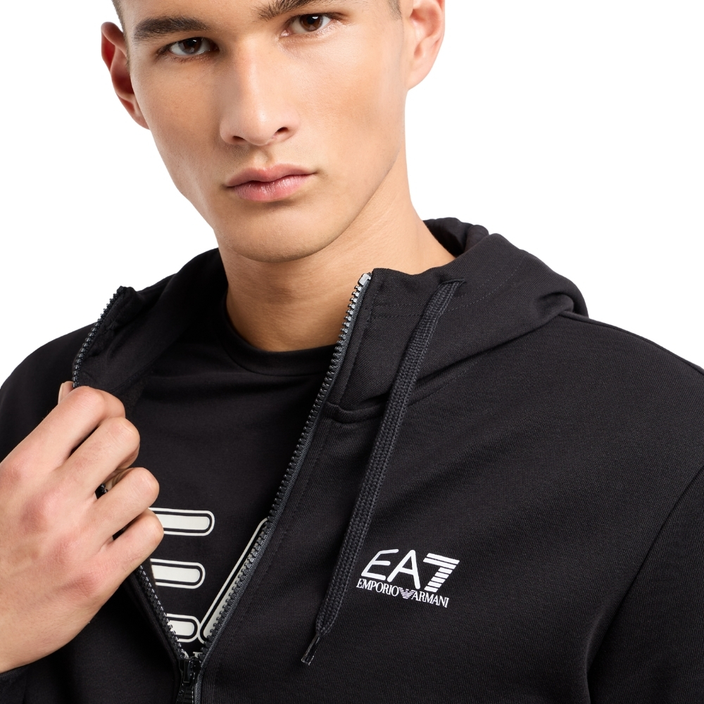 Felpa full-zip: chiusura con cerniera, collo alto e dettagli iconici EA7 sul petto.